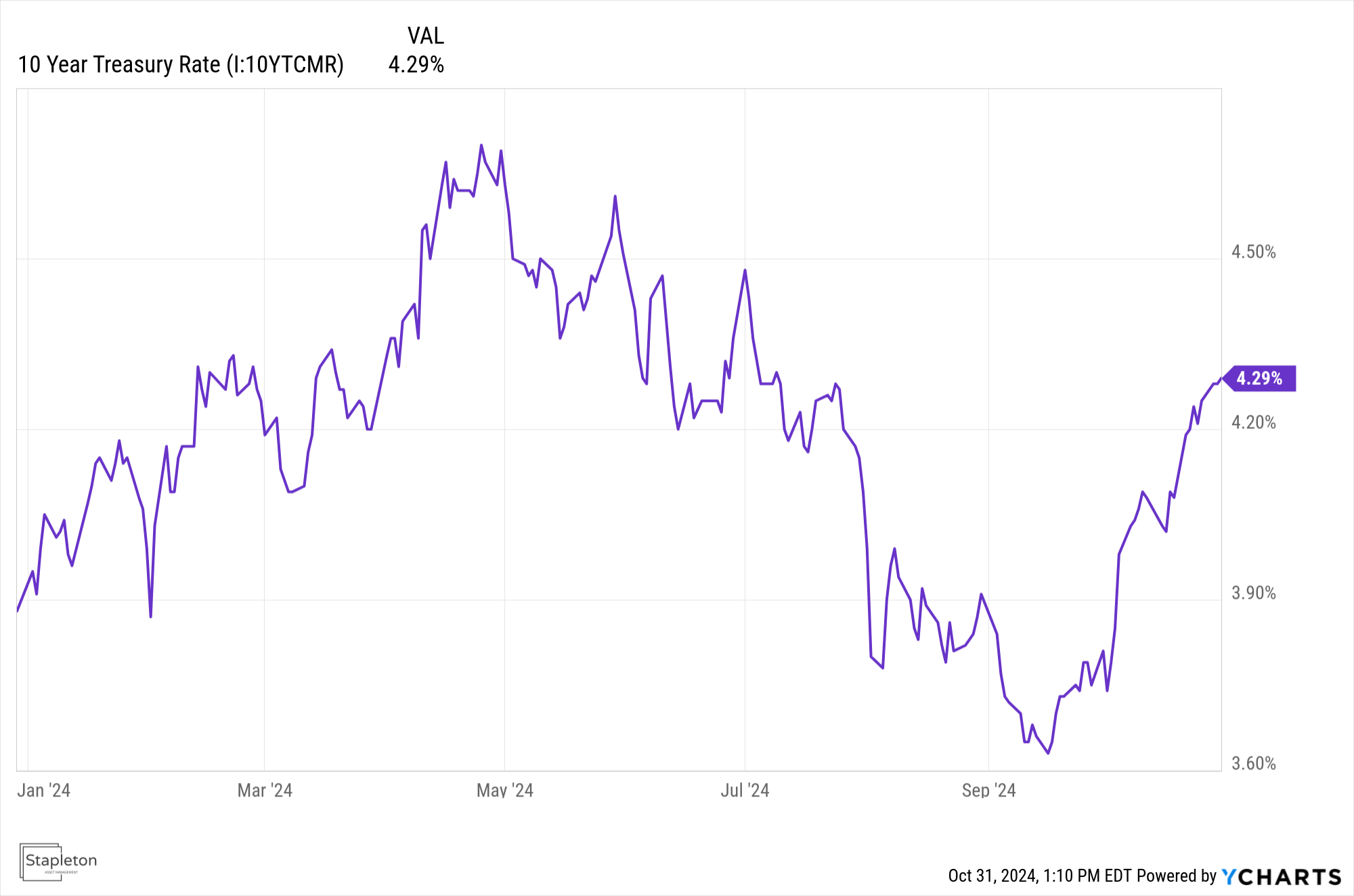 Figure 1 The 10 Year Treasury Rate dropped from a high of 4.7% in May to a low of 3.6% in September. In a few short weeks we have retraced the majority of that due to increased concerns about inflation.